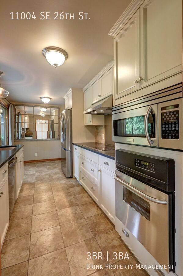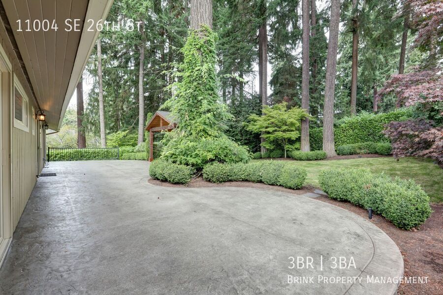 Enjoy all Enatai has to offer in this 3bd, 2.5ba home! Large living/dining area with tons of natural light offers the perfect escape from a busy day. Dining room sprawls out to a private patio with large gazebo and mature vegetation. Kitchen has been tastefully updated to include high-end SS appliances. Down the hall, you will find 3 generously sized bedrooms, including primary ensuite. Downstairs is perfect for entertaining with large, open-concept family room, laundry, and bonus area perfect for an office or gym. Fireplace is for decoration only. Located close to DT Bellevue, freeways, yet quiet and secluded - this home is a must see! Landscaping included in rent!